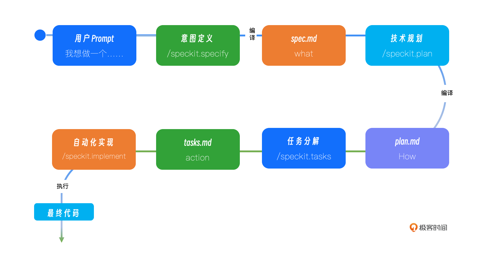 - 需求编译器:将你用自然语言描述的模糊想法,“编译”成一份结构化的、无歧义的需求规范(spec.md)。
