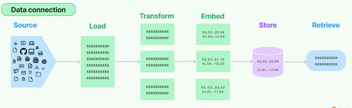 - 文本块形成之后,我们就通过 LLM 来做嵌入(Embeddings)
