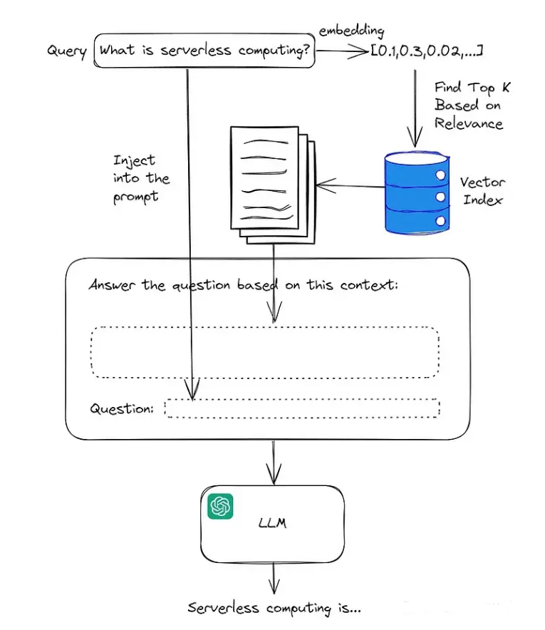 - 检索:对于给定的输入(问题),模型首先使用检索系统从大型文档集合中查找相关的文档或段落。这个检索系统通常基于密集向量搜索,例如 ChromaDB、Faiss 这样的向量数据库。